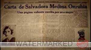 Salvadora Medina Onrubia (La Plata, Argentina, 23 de marzo de 1894- Buenos Aires, Argentina, 20 de julio de 1972 ). Poeta, narradora, dramaturga, anarquista y feminista. Fue la primera mujer directora de un diario en Argentina.