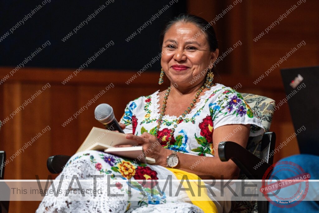 Elisa Chavarrea Chim(Chumayel, Yucatán). Poeta, antropóloga, docente y promotora de la escritura en lengua maaya ko’olel . Recibió el Premio Internacional de Lenguas Originarias Waldemar Noch Tzec en 2021. Fundadora del Colectivo de Mujeres Escritoras Mayas Xkusamo’ob (Golondrinas).